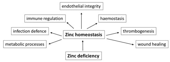 Zinc is essential for innate and acquired immunity and for the regulation of numerous reactions in haemostasis and thrombosis [,]. It is of great importance for platelet aggregation and fibrin formation, activation of the contact system on artificial surfaces, interactions between the contact system and the endothelium (regulation of thrombosis), as well as for coagulation, anticoagulation and fibrinolysis [,].