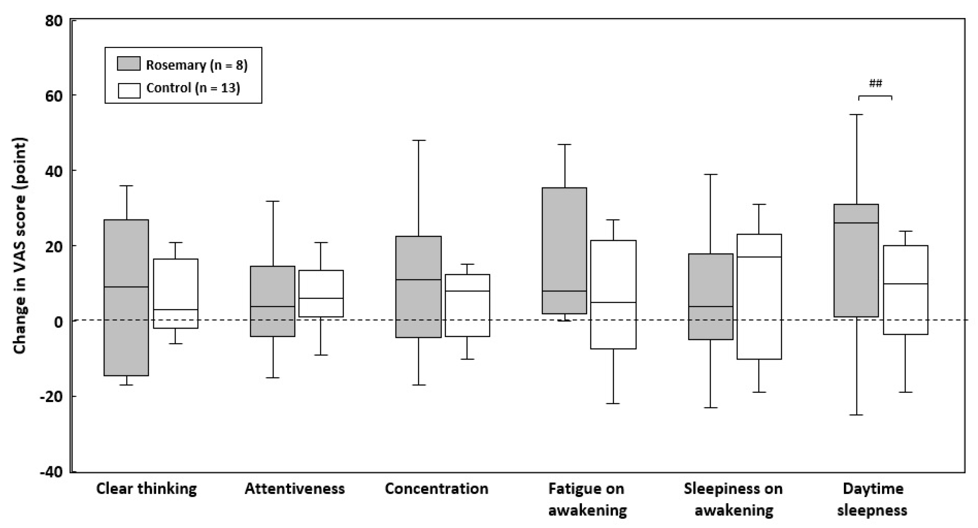 | Score (Point) | Rosemary (n = 8) | Control (n = 13) | pb | |