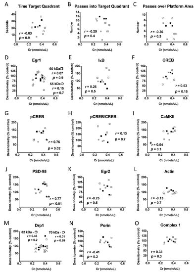 3.7. Correlational Analysis with Cr, Memory, and Protein Levels