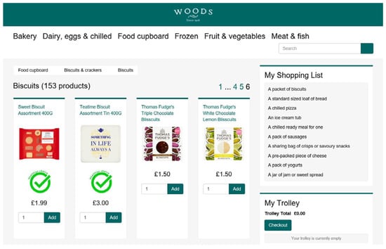 An example of a page of the online supermarket where “healthier choice” badges were displayed.