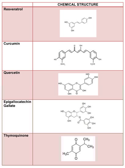 Non-enzymatic glycation is a mechanism associated to diabetic cataract development, and advanced glycation end-products accumulation with age may lead to lens opacity []. Thus, compounds with potent anti-glycating activity such as polyphenols are viable anti-cataract therapeutic options. Polyphenols are dietary antioxidants commonly found in foods such as fruits, vegetables, nuts, seeds, cereals, chocolate, and beverages such as tea, coffee, and wine []. With the growing interest in using food as medicine, polyphenol nutraceuticals have gained attention in treating cataracts. Caffeic acid, a naturally occurring cinnamic acid found in various plants such as coffee, pear, basil, oregano, and apple [,], has been shown to inhibit the formation of advanced glycation end-products [,,]. Another naturally occurring cinnamic acid, ferulic acid, is found in vegetables, fruits, wheat, oats, and rice and has been shown to prevent advanced glycation end products []. Recent studies have investigated the therapeutic potential of several polyphenolic compounds on cataract development. The following describes these compounds (Figure 2).