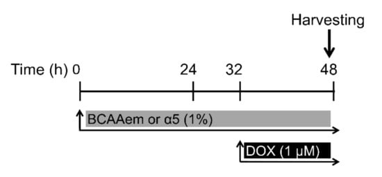 - Wubetu, G.Y.; Utsunomiya, T.; Ishikawa, D.; Ikemoto, T.; Yamada, S.; Morine, Y.; Iwahashi, S.; Saito, Y.; Arakawa, Y.; Imura, S.; et al. Branched chain amino acid suppressed insulin-initiated proliferation of human cancer cells through induction of autophagy. Anticancer Res. 2014, 34, 4789–4796. [Google Scholar]
