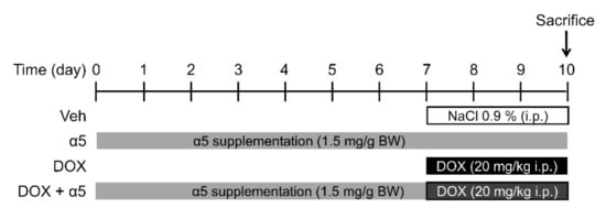 - Mitra, M.S.; Donthamsetty, S.; White, B.; Latendresse, J.R.; Mehendale, H.M. Mechanism of protection of moderately diet restricted rats against doxorubicin-induced acute cardiotoxicity. Toxicol. Appl. Pharmacol. 2007, 225, 90–101. [Google Scholar] [CrossRef] [PubMed]