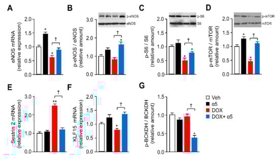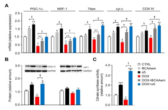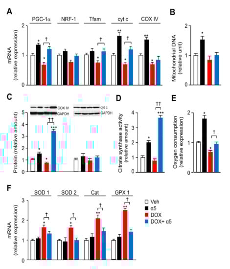 3.2. α5 Mixture Prevents Mitochondrial Dysfunction in Heart of DOX-Treated Mice