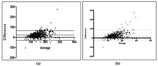 - Bland, J.M.; Altman, D.G. Statistical Methods for Assessing Agreement between Two Methods of Clinical Measurement. Lancet 1986, 1, 307–310. [Google Scholar] [CrossRef]