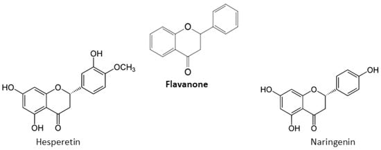 A saturated, oxidized C ring is present in flavanones, also described as di-hydroflavones [22]. Main flavanones are hesperetin and naringenin (Figure 3) [22].
