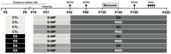 3.3. Prolonged WSD Results in an Obesogenic Phenotype in Adulthood that is not Modulated by ES or Postnatal Diet