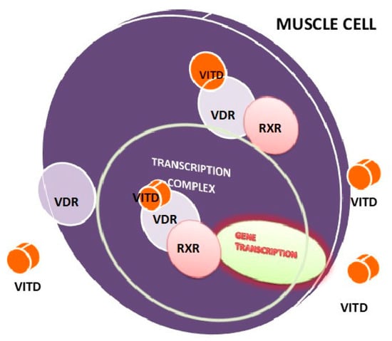 The autocrine pathway seems to be the most important in relation to the action of vitamin D on skeletal muscle function. Targets for the VITD receptor have been identified in almost every body tissue. VDR regulates expression in hundreds of genes that perform essential bodily functions. The discovery of VDR in muscle suggests the importance of the role of VITD in muscle tissue [19,20,21,22,23].
