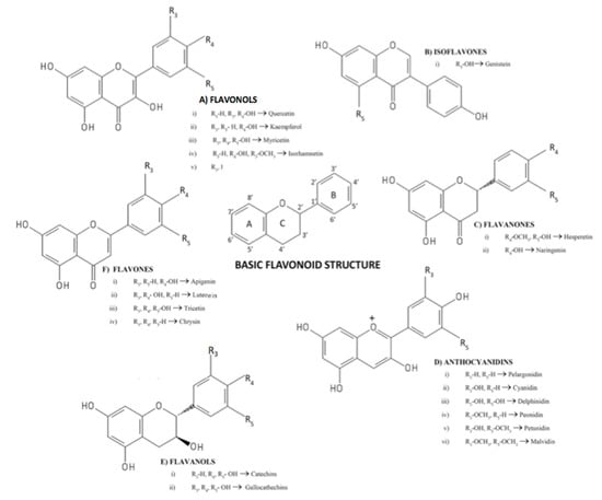 Chemical structures of the more common flavonoids in foods (reprints with permission of Santhakumar et al. 2018 [55]).