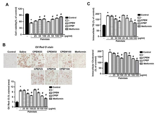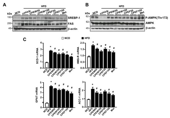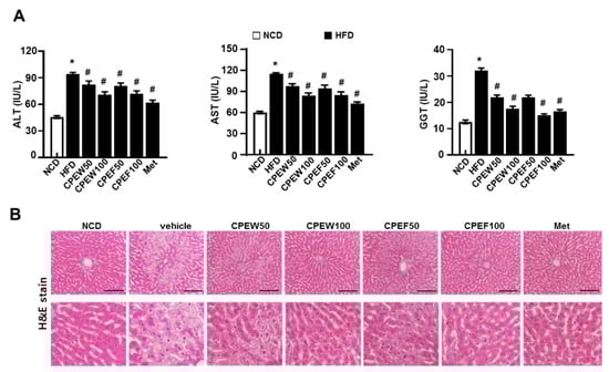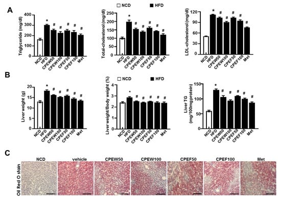 3.2. CPEW and CPEF Prevents HFD-Induced Hepatic Steatosis