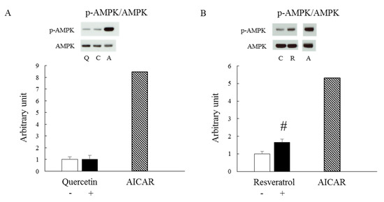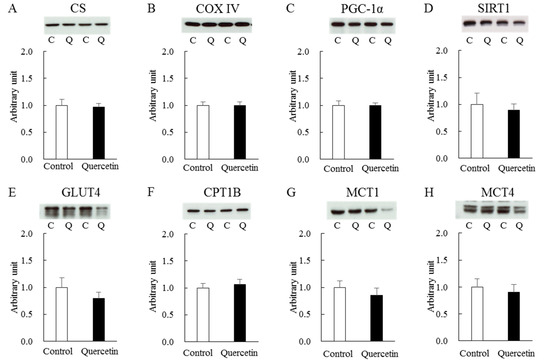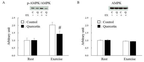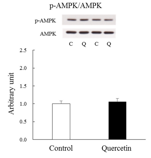 Chicago/Turabian StyleKoshinaka, Keiichi, Asuka Honda, Hiroyuki Masuda, and Akiko Sato. 2020. "Effect of Quercetin Treatment on Mitochondrial Biogenesis and Exercise-Induced AMP-Activated Protein Kinase Activation in Rat Skeletal Muscle" Nutrients 12, no. 3: 729. https://doi.org/10.3390/nu12030729