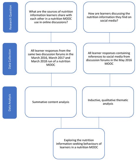 A multi-methods approach was utilized to explore the information-seeking behaviours of MOOC participants. This included (i) a summative content analysis to categorise the sources of nutrition information and the vocational backgrounds of its providers from online conversations [27]; and (ii) an exploratory, inductive, qualitative approach to analyse learners’ posts in discussion forums throughout the MOOC, to explore how people used information they found on social media.