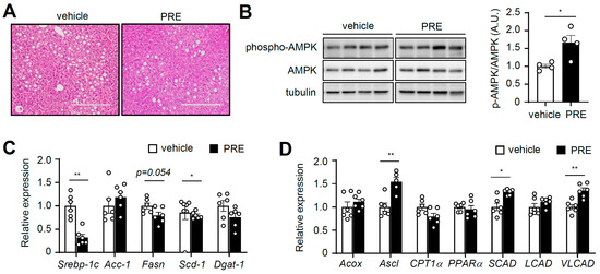 3.4. PRE Ameliorates Adipose Tissue Inflammation