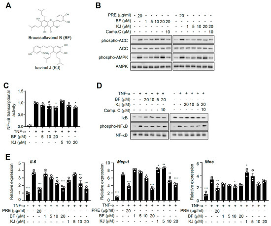 Lee, J.M.; Choi, S.S.; Park, M.H.; Jang, H.; Lee, Y.H.; Khim, K.W.; Oh, S.R.; Park, J.; Ryu, H.W.; Choi, J.H. Broussonetia papyrifera Root Bark Extract Exhibits Anti-inflammatory Effects on Adipose Tissue and Improves Insulin Sensitivity Potentially Via AMPK Activation. Nutrients 2020, 12, 773. https://doi.org/10.3390/nu12030773