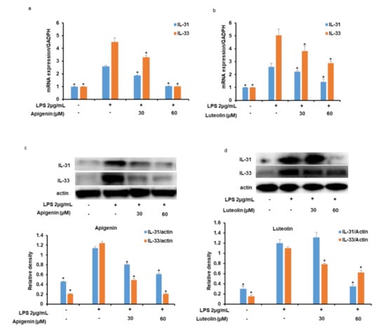 Effect of Luteolin and Apigenin on the Production of Il-31 and Il-33 in Lipopolysaccharides-Activated Microglia Cells and Their Mechanism of Action