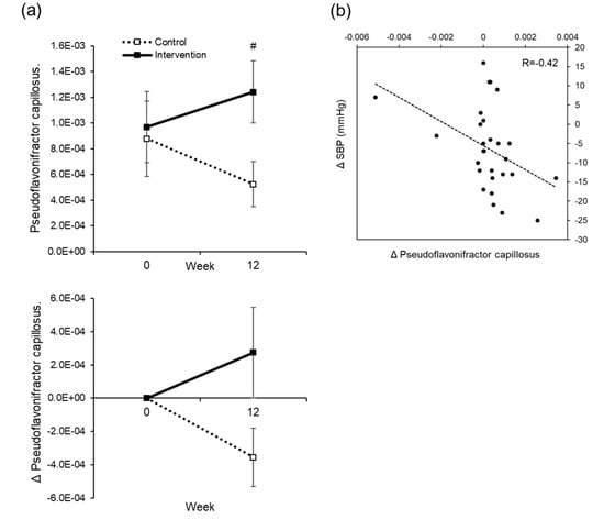 Table S1). However, in order to further examine the mechanism, it is necessary to examine the secretion of hormones related to blood pressure, urine volume, the excretion of urine components, and blood pressure. We also investigated the intestinal flora as another possible mechanism. In the intervention group, there was a weak correlation between a decrease in blood pressure and rise in