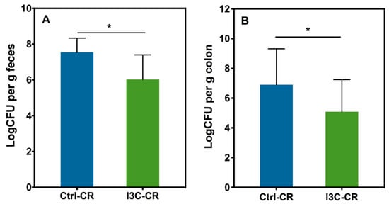3.2. Effects of Dietary I3C on Cr Colonization in Feces and Colon