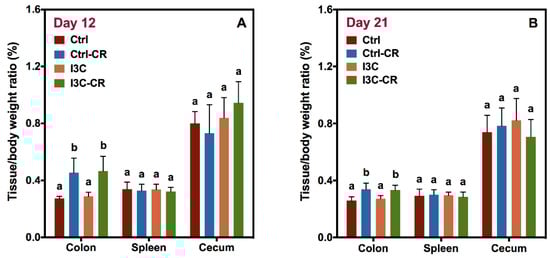 3.3. Effects of Dietary I3C on Colon, Spleen and Cecum Weight in Mice