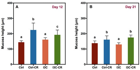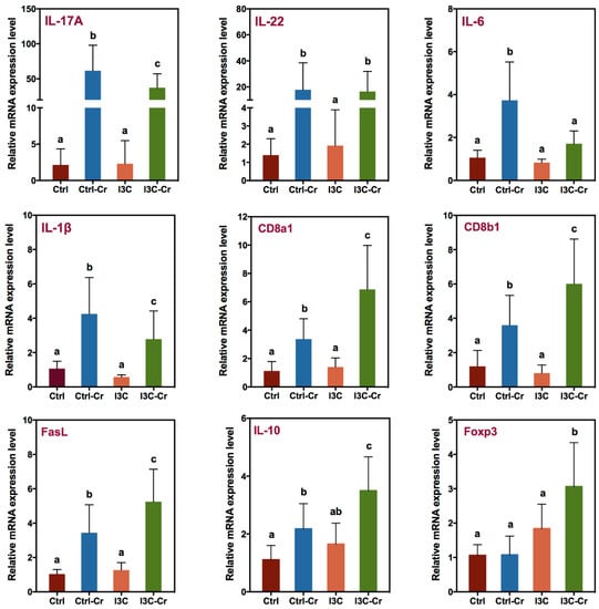 3.1. Effect of Cr Infection and I3C Supplement on Food Intake and Body Weight