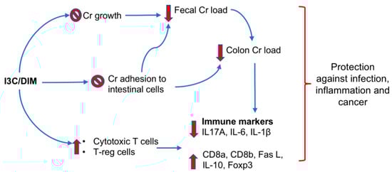 Indole-3-Carbinol Inhibits Citrobacter rodentium Infection through Multiple Pathways Including Reduction of Bacterial Adhesion and Enhancement of Cytotoxic T Cell Activity