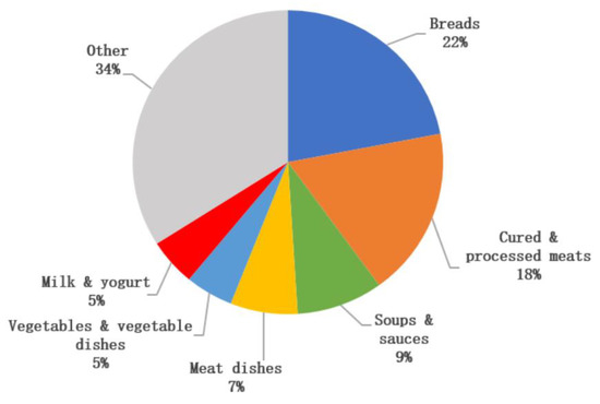 Key sources of sodium intake (excluding discretionary salt) in Irish adults.