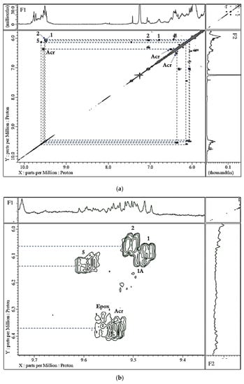 Consistently, following the subcutaneous injection of the simplest trans-2-alkenal acrolein to rats, N-acetyl-S-(3-hydroxypropyl)-l-cysteine was detected and isolated as a key urinary excretion product [74], and these results ae also fully consistent with our 1H NMR-based urinary metabolic screening investigations [73], including the hepatic metabolic reduction of the aldehyde functions to alcohol derivatives. However, for these experiments, acrolein was administered by the subcutaneous injection of a 1% (v/v) solution in arachis (peanut) oil into the lumbar region; the vehicle may itself have served as a source of aldehydic LOPs, especially if allowed to peroxidise during periods of storage or solution preparation.
