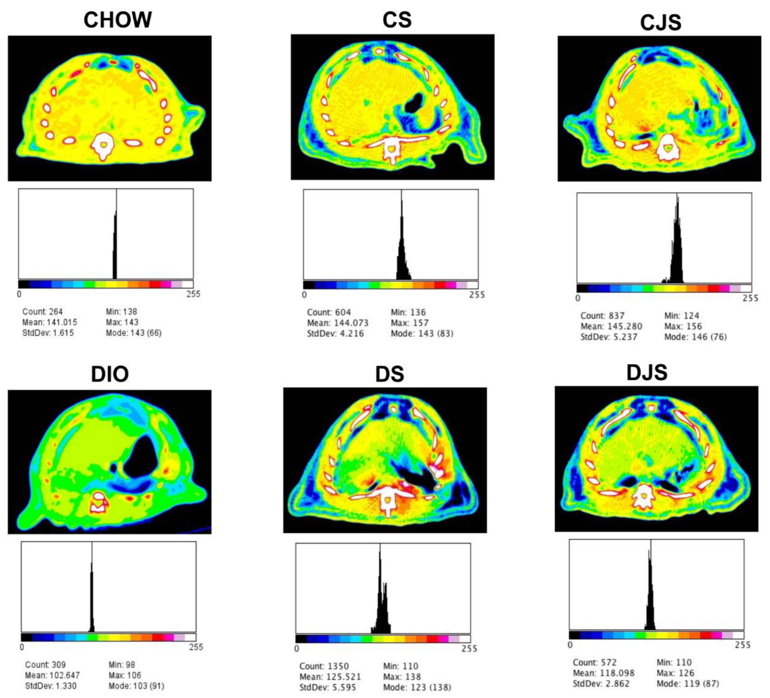 - CHOW and DIO rats supplemented with 0.1 mg/g/day of tart cherry seed powder (CS and DS, respectively);