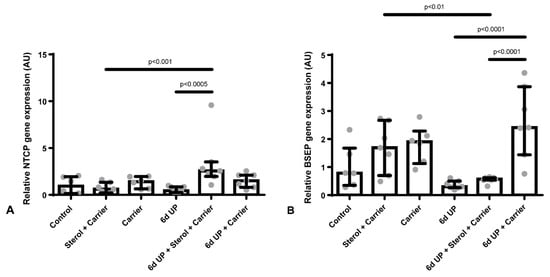 | BSEP | nc | nc | nc | nc | nc | ↑ (Sterol + Carrier, UP & UP + Sterol + Carrier) |