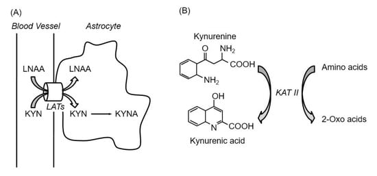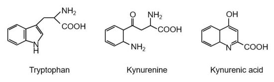 61. Sekine, A.; Kuroki, Y.; Urata, T.; Mori, N.; Fukuwatari, T. Inhibition of large neutral amino acid transporters suppresses kynurenic acid production via inhibition of kynurenine uptake in rodent brain. Neurochem. Res. 2016, 41, 2256–2266. [Google Scholar] [CrossRef] [PubMed]