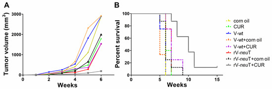 Overall, these results indicate that CUR administration potentiated the antitumoral effect of the rV-neuT vaccination.