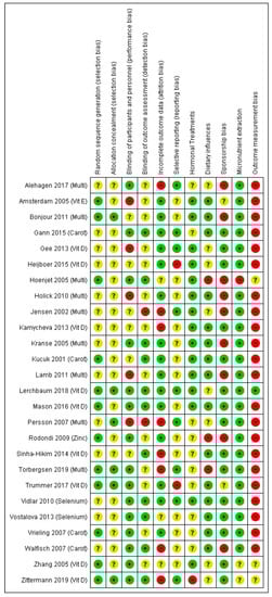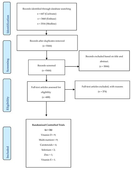 APA StyleJanjuha, R., Bunn, D., Hayhoe, R., Hooper, L., Abdelhamid, A., Mahmood, S., Hayden-Case, J., Appleyard, W., Morris, S., & Welch, A. (2020). Effects of Dietary or Supplementary Micronutrients on Sex Hormones and IGF-1 in Middle and Older Age: A Systematic Review and Meta-Analysis. Nutrients, 12(5), 1457. https://doi.org/10.3390/nu12051457