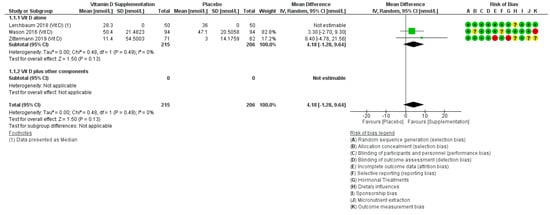 - Lerchbaum, E.; Trummer, C.; Theiler-Schwetz, V.; Kollmann, M.; Wölfler, M.; Heijboer, A.C.; Pilz, S.; Obermayer-Pietsch, B. Effects of vitamin D supplementation on androgens in men with low testosterone levels: A randomized controlled trial. Eur. J. Nutr. 2018, 58, 3135–3146. [Google Scholar] [CrossRef]