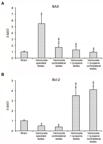 3.3. Lycopene Modulates the Expression of BAX and Bcl-2