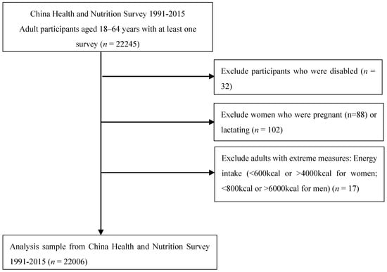 - Popkin, B.M.; Du, S.; Zhai, F.; Zhang, B. Cohort Profile: The China Health and Nutrition Survey—Monitoring and understanding socio-economic and health change in China, 1989–2011. Int. J. Epidemiol. 2010, 39, 1435–1440. [Google Scholar] [CrossRef]