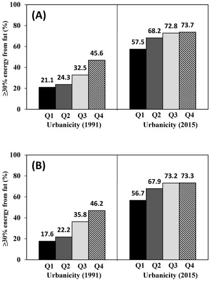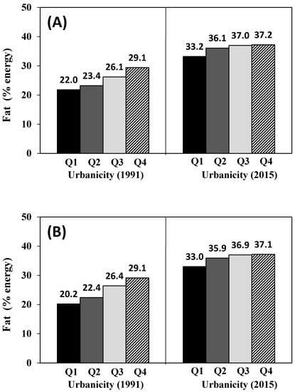 Longitudinal Association between Urbanicity and Total Dietary Fat Intake in Adults in Urbanizing China from 1991 to 2015: Findings from the CHNS