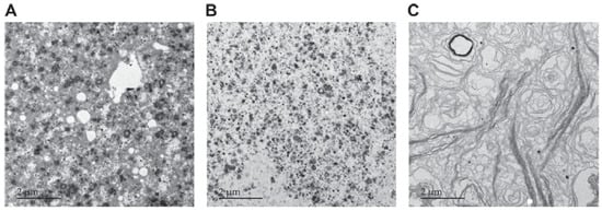 Electron microscope image of three different commercial ingredients containing MFGM. Each sample varies in composition and concentration of phospholipids and in structure. However, all of them have been used successfully in food products all over the world (adapted from ref [2]).