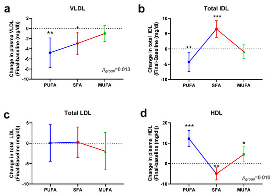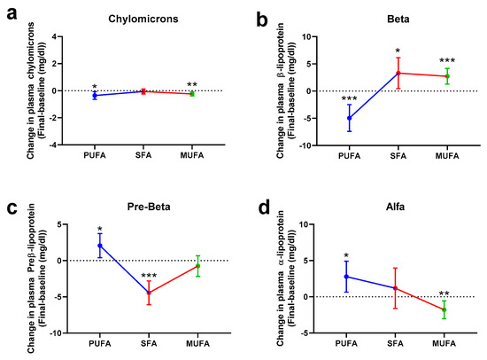 3.2. Effect of the Breakfast Fat on Lipoprotein Subfraction