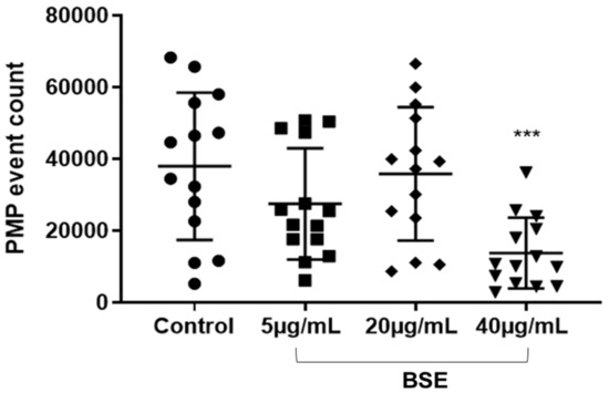 30]. From the current study, the significant inhibition of CD42b-positive circulatory PMPs observed in vitro may be attributed to the antioxidant properties of BSE polyphenols. It is believed that the inhibition of PMP generation may be the result of neutralisation of H