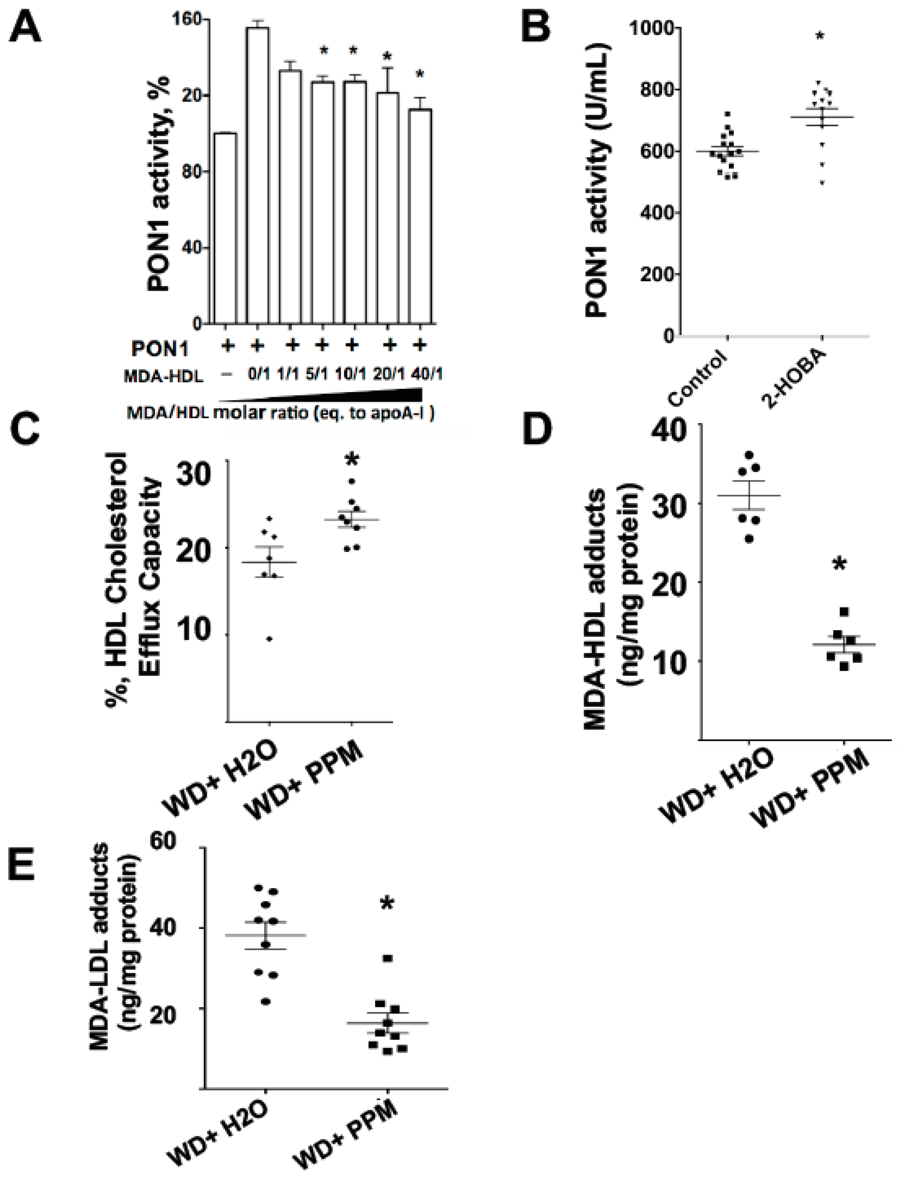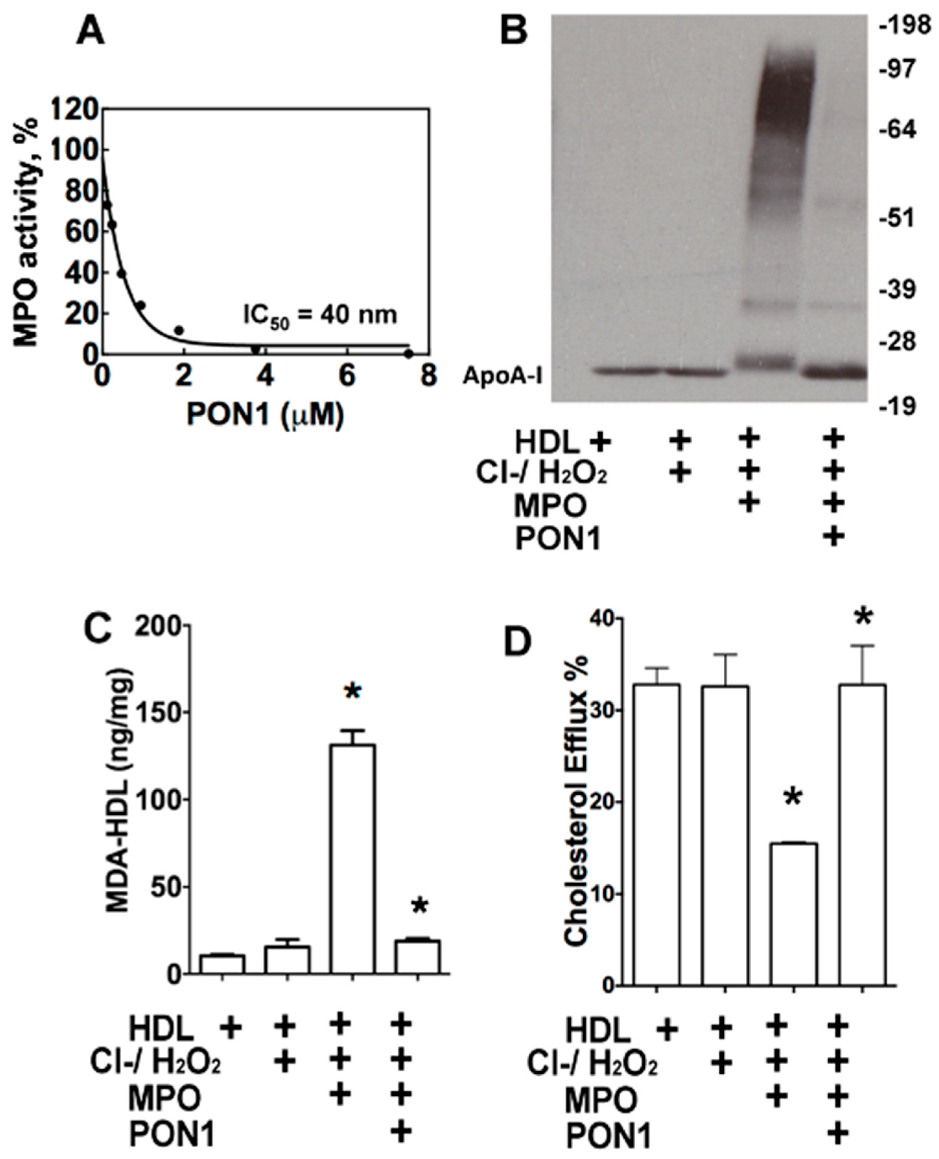 3.1. Effects of PON1 on MPO Activity, apoAI Crosslinking, MDA-HDL Adducts, and HDL Cholesterol Efflux Capacity
