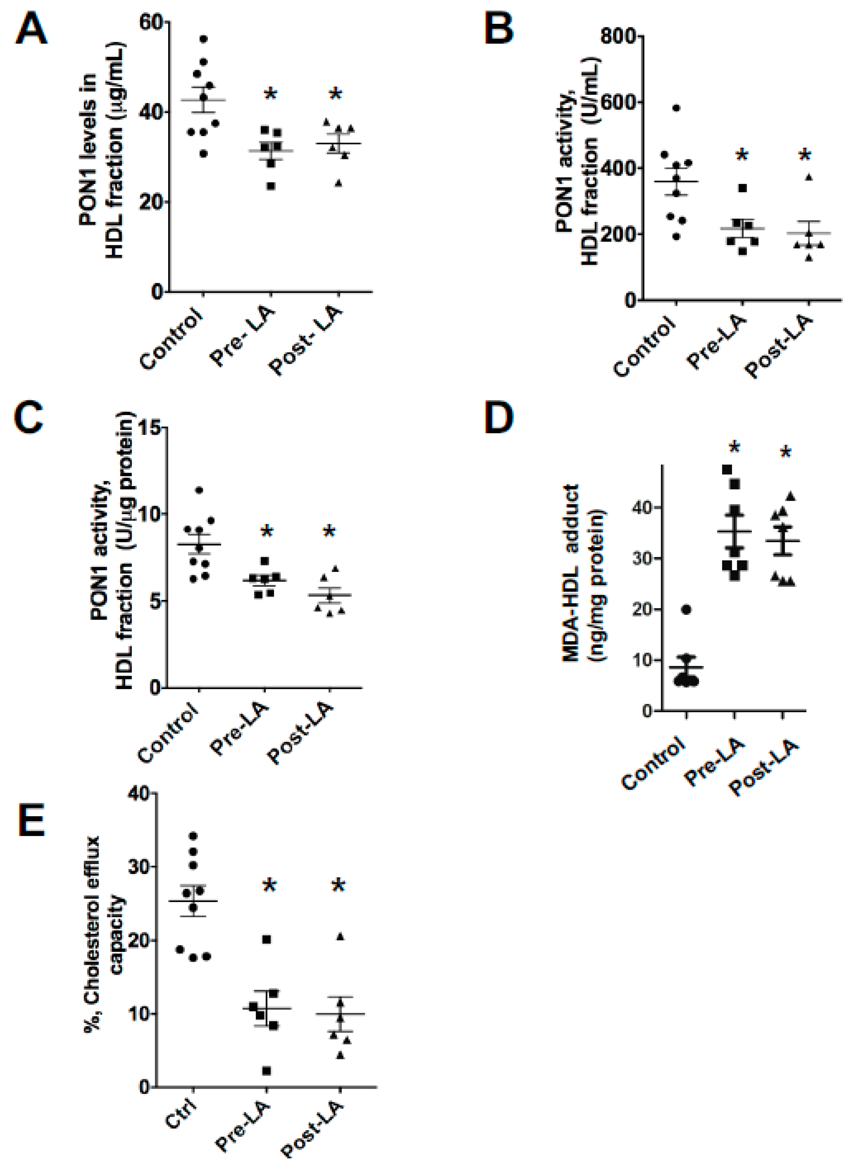 3.4. Effects of HDL MDA Modification and Dicarbonyl Scavenging on PON1 Activity