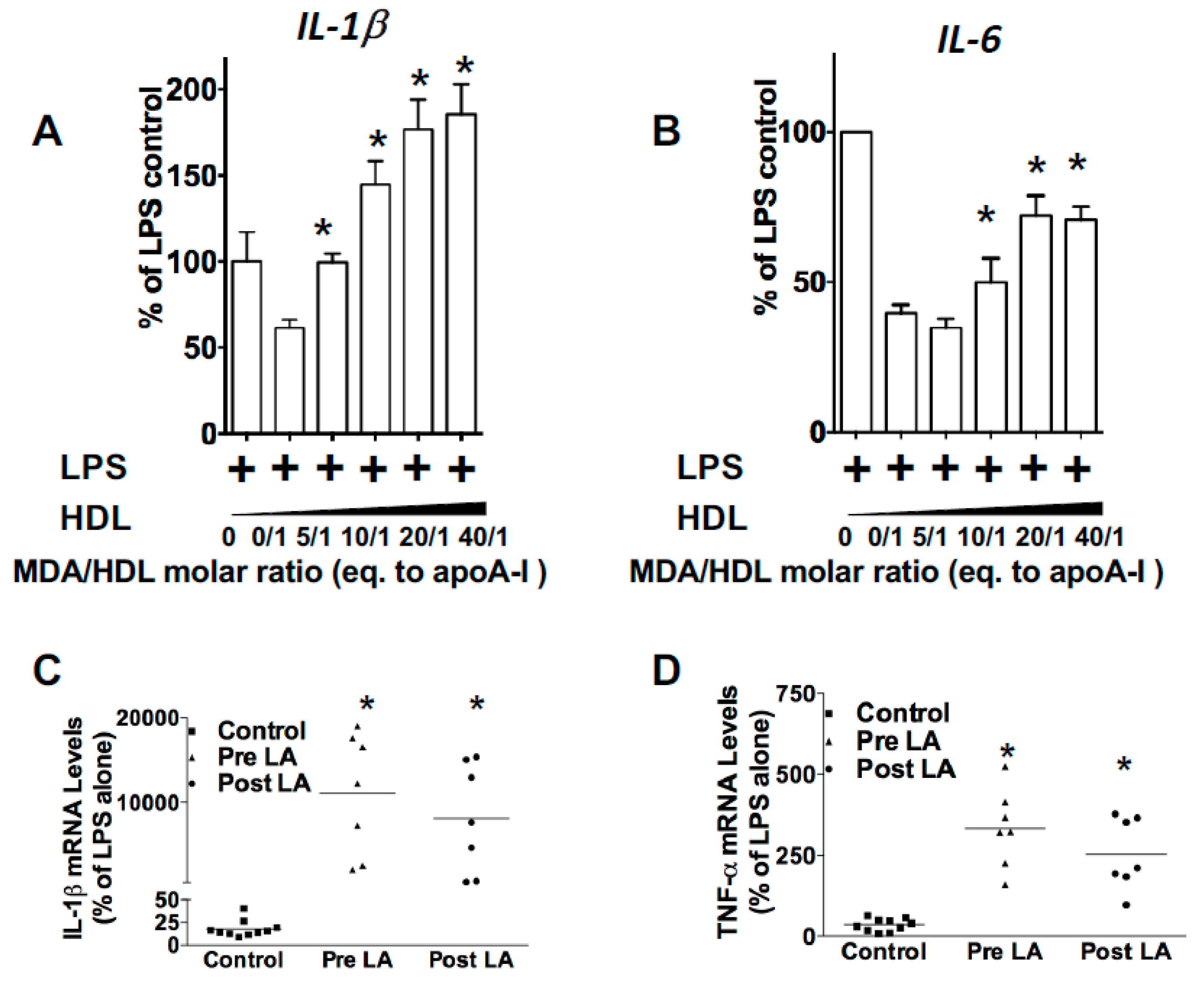 3.5. FH Patients Have Decreased PON1 Activity, Increased MDA-apoAI Adducts, Defective HDL Cholesterol Efflux Capacity and Impaired HDL Anti-Inflammatory Function