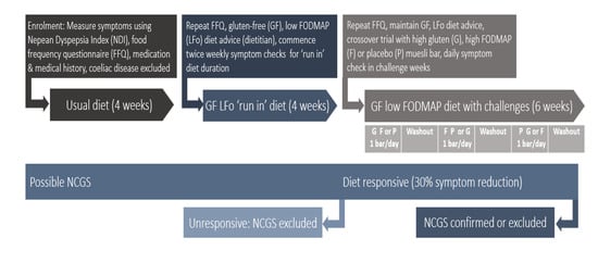 The following are available online at https://www.mdpi.com/2072-6643/12/7/1947/s1, Supplementary File 1: Modified Salerno protocol to differentiate responses to wheat gluten and/or fructans in a randomized, double-blind, placebo-controlled crossover trial. Supplementary File 2: Example Wheat Sensitivity Questionnaire: modified from The Salerno Experts' Criteria. Primary outcome: Response of dyspeptic (or NCG/WS) symptoms to dietary removal, challenge and subsequent re-challenge with gluten and FODMAPs. Secondary outcomes: Response of other gastrointestinal symptoms and extra-intestinal symptoms to dietary removal and subsequent challenge with FODMAPS and gluten.