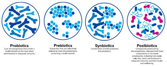 - Aguilar-Toalá, J.; García-Varela, R.; Garcia, H.; Mata-Haro, V.; González-Córdova, A.; Vallejo-Cordoba, B.; Hernandez-Mendoza, A. Postbiotics: An evolving term within the functional foods field. Trends Food Sci. Technol. 2018, 75, 105–114. [Google Scholar] [CrossRef]