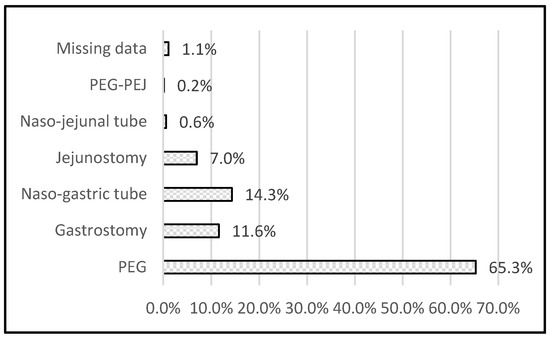 Access route for enteral nutrition. PEG—Percutaneous endoscopic gastrostomy, PEG–PEJ—Percutaneous endoscopic gastrostomy/jejunostomy.