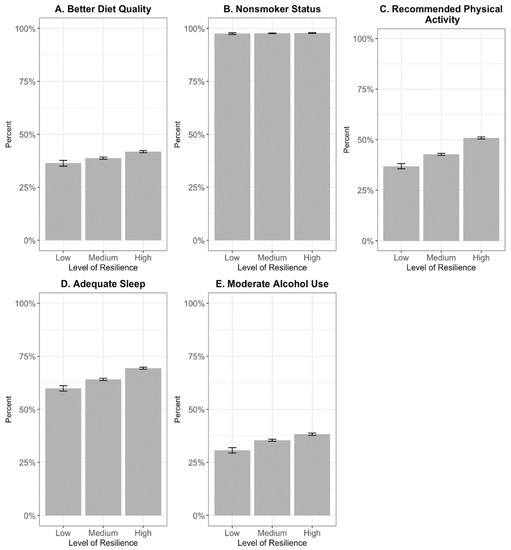 Considering the increasing prevalence of poor sleep quality among American adults, there is a critical need for more studies investigating the link between higher resilience and healthy sleep behaviors [61]. This is highly pertinent to public health policies and educational initiatives for vulnerable populations, given substantial evidence linking unhealthy sleeping patterns to racial/ethnic discrimination [62]. On that note, researchers should consider the reciprocal relationships between sleep, physical activity, and dietary behaviors to understand the role of resilience and multiple unhealthy behaviors [63,64].