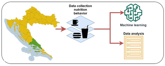 The aim of this study is to extend the current knowledge on dietary and lifestyle habits among pregnant women in Dalmatia, Croatia, highlighting the major mainland–island differences. Croatian island population has been in the focus of epidemiological and nutritional studies for decades and a more traditional, Mediterranean background and lifestyle patterns would be expected due to their geographic confinement. However, current globalization trends have influenced the aforementioned traditional communities substantially and this seems to be reflected in the population of pregnant women as well. Additionally, studies on the Mediterranean diet adherence in island populations are generally scarce, especially in pregnant women and no specific nutritional guidelines have been drawn up for this sensitive subpopulation in Croatia. The specific objectives of this study are: (i) to investigate the level of maternal adherence to the Mediterranean diet in the Croatian Islands’ Birth Cohort Study (CRIBS), (ii) to correlate the dietary habits with different maternal socioeconomic and lifestyle characteristics and environmental exposures (education, income, smoking, pre-pregnancy BMI, parity etc.), (iii) to detect island–mainland differences in food choices, the Mediterranean diet adherence, and other socioeconomic and lifestyle characteristics using two different methodological approaches (conventional statistics and machine learning) (Figure 1).
