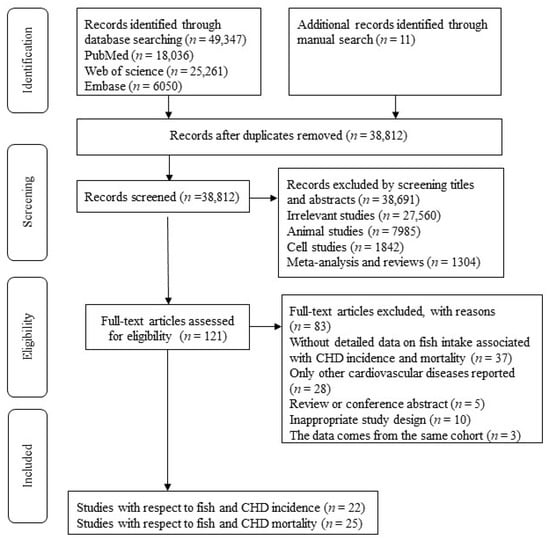 Chicago/Turabian StyleZhang, Bo, Ke Xiong, Jing Cai, and Aiguo Ma. 2020. "Fish Consumption and Coronary Heart Disease: A Meta-Analysis" Nutrients 12, no. 8: 2278. https://doi.org/10.3390/nu12082278