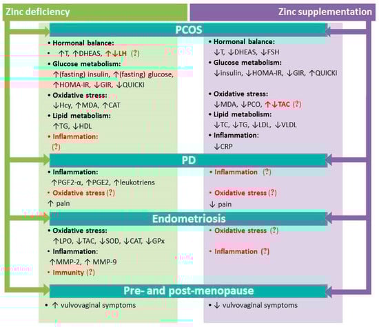 Nasiadek, M.; Stragierowicz, J.; Klimczak, M.; Kilanowicz, A. The Role of Zinc in Selected Female Reproductive System Disorders. Nutrients 2020, 12, 2464. https://doi.org/10.3390/nu12082464