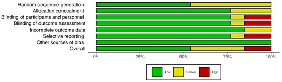 Distribution of risk-of-bias judgements within each bias domain of the Cochrane Collaboration’s tool.