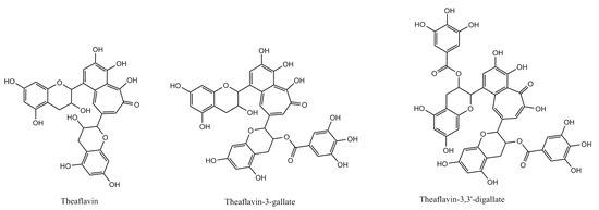 - Lombardo Bedran, T.B.; Morin, M.-P.; Palomari Spolidorio, D.; Grenier, D. Black Tea Extract and Its Theaflavin Derivatives Inhibit the Growth of Periodontopathogens and Modulate Interleukin-8 and β-Defensin Secretion in Oral Epithelial Cells. PLoS ONE 2015, 10, e0143158. [Google Scholar] [CrossRef] [PubMed]